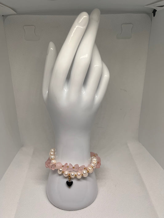 In Love: Rose Quartz and Heart-Shaped Hematite Stone Beaded Earrings