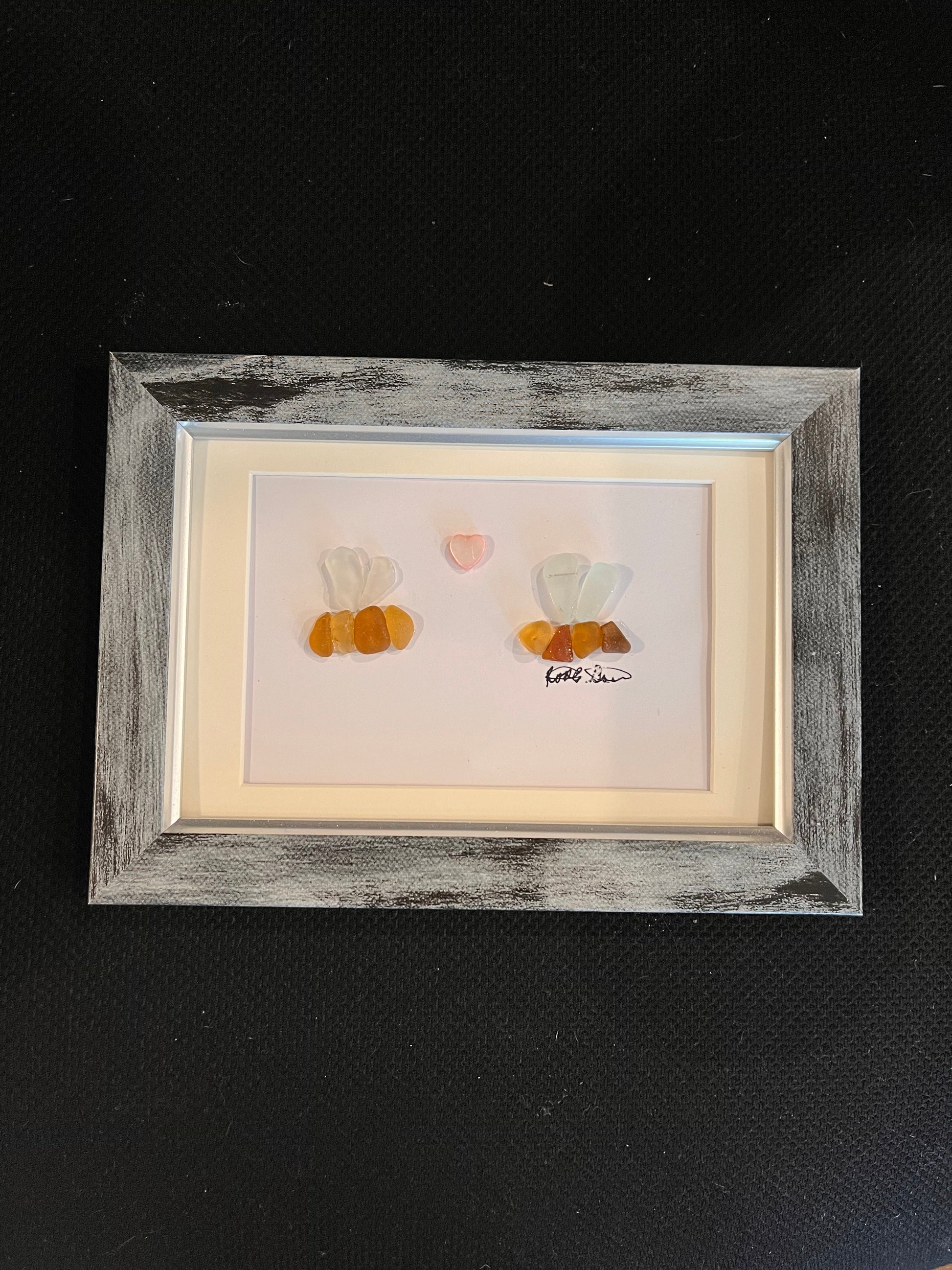 Celebrate your love for sea glass with one of these 4x6 framed sea glass artworks! Each piece is lovingly handcrafted, featuring genuine sea glass carefully arranged to create a charming and unique design. Choose from various designs like a dog, cat, bee, butterfly, plants, flowers, drinks, or birds.